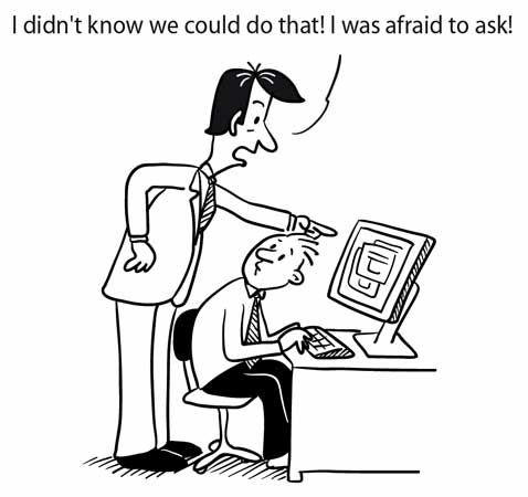 Cartoon att användas vid intern presentation om saker att tänka på vid försäljning (copy: Dennis Ladd)